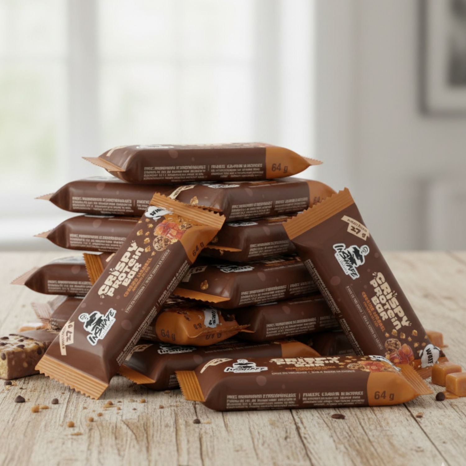 Crispy Protein Bar 64 g - Cookies caramel / 1 barre est en rupture de stock et sera expédié dès qu’il sera de retour en stock.