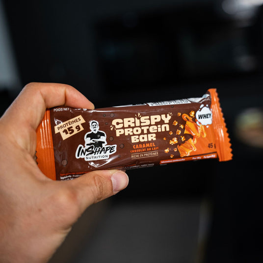 Crispy Protein Bar 45g - Caramel milk chocolate / 1 bar is out of stock and will be shipped as soon as it is back in stock.